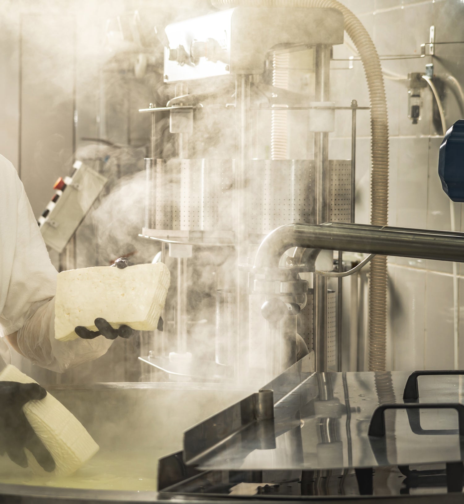 In speziellen Kesseln wird die Milch langsam und schonend auf die richtige Temperatur erhitzt, um die natürlichen Enzyme in der Milch zu aktivieren. Dann wird Lab hinzugefügt, um die Milch zu gerinnen. Das Gerinnen dauert je nach Käsesorte zwischen 30 Minuten und mehreren Stunden. Anschließend wird die geronnene Milch vorsichtig geschnitten und gerührt, um die Molke abzutrennen. Diese wird entweder direkt als Tierfutter verwendet oder zu anderen Produkten weiterverarbeitet.